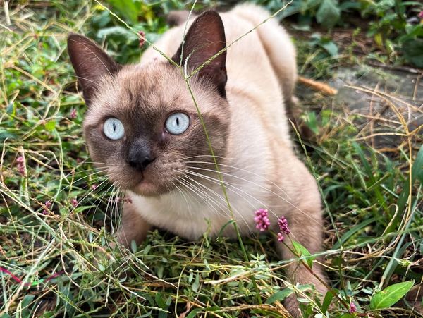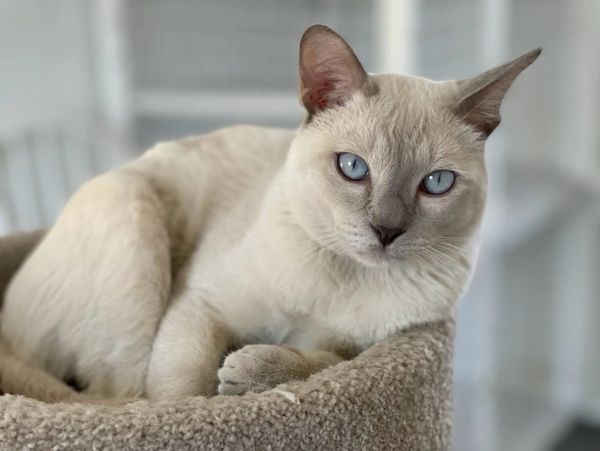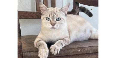 Words cannot describe the sweet, gentle nature of this cat. She lives with her two half sisters. They all have the same Thai dad. She might be called Dog 2 because she follows you around until you pick her up. She loves attention. But, I have never seen her bring out her claws. A true gentlewoman of the cat kind.